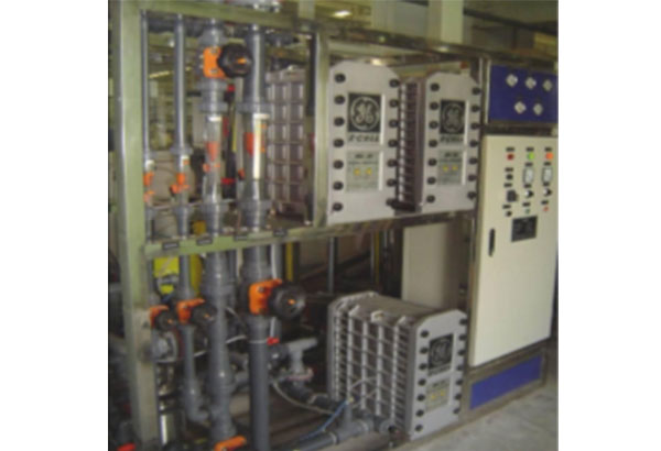 3.預(yù)處理→一級反滲透→加藥機(jī)(pH調(diào)節(jié))→中間水箱→二級反滲透(正電荷反滲透膜)→純水水箱→純水泵→EDI裝置→紫外線******器→0.2或0.5μm精密過濾器→水對象(≥17mΩ)。Cm)。